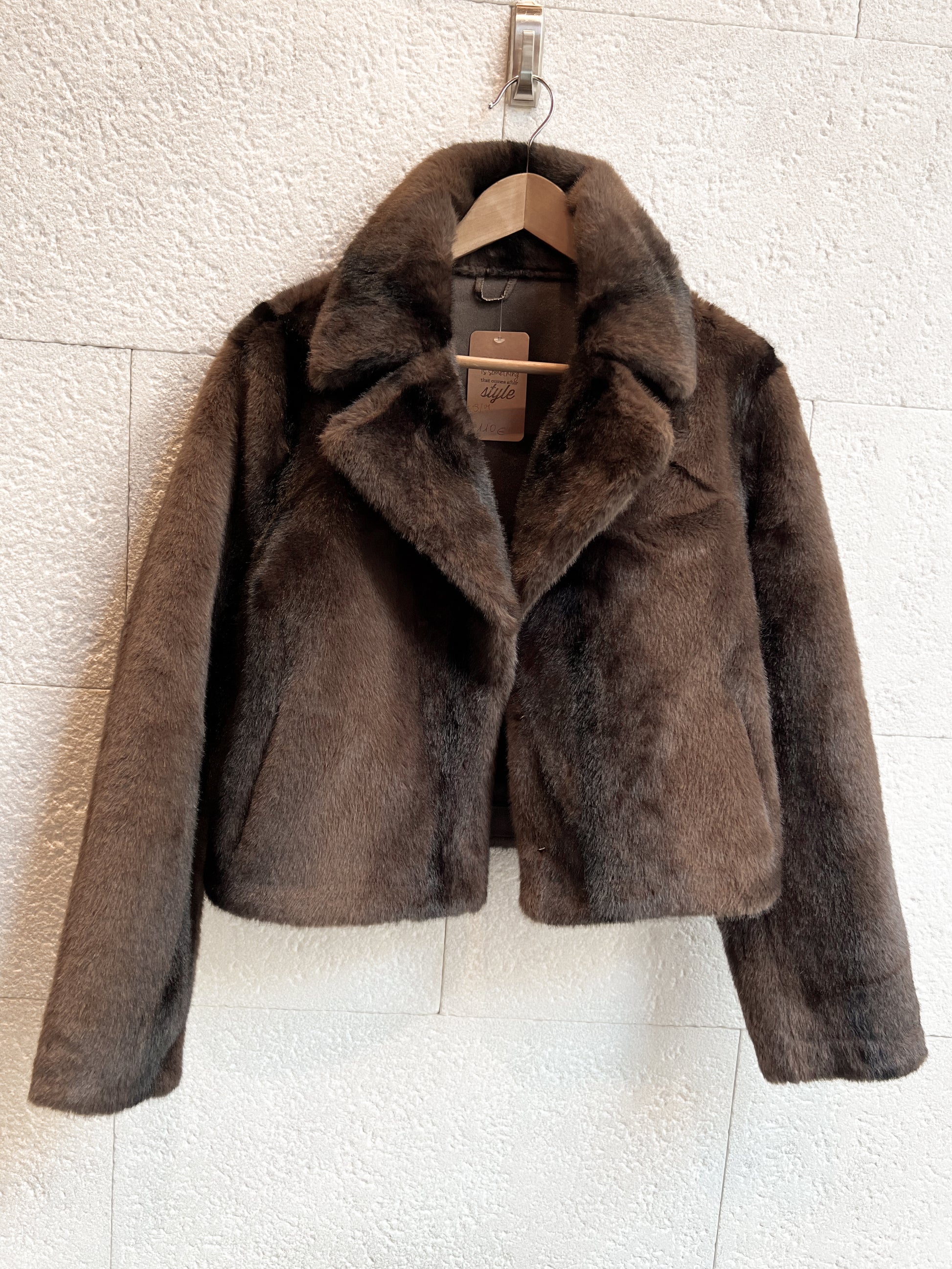 Abrigo de pelo efecto visón. Bolsillos laterales y forro interior a tono. Cierre frontal con ganchos metálicos. Súper suave y abrigadito!