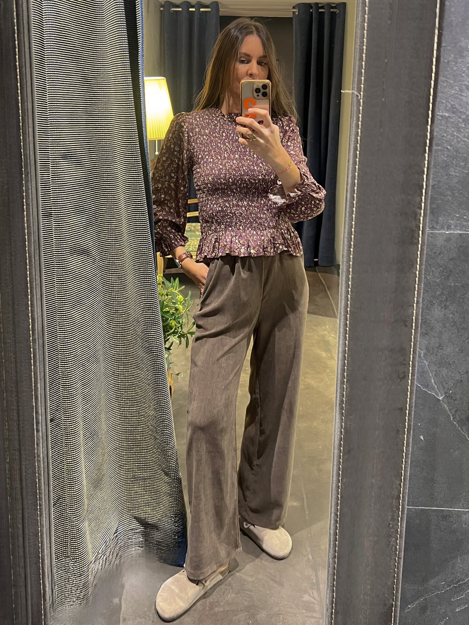 Pantalón recto con goma en la cintura y bolsillos laterales. Tejido aterciopelado, ¡súper cómodos y suaves!