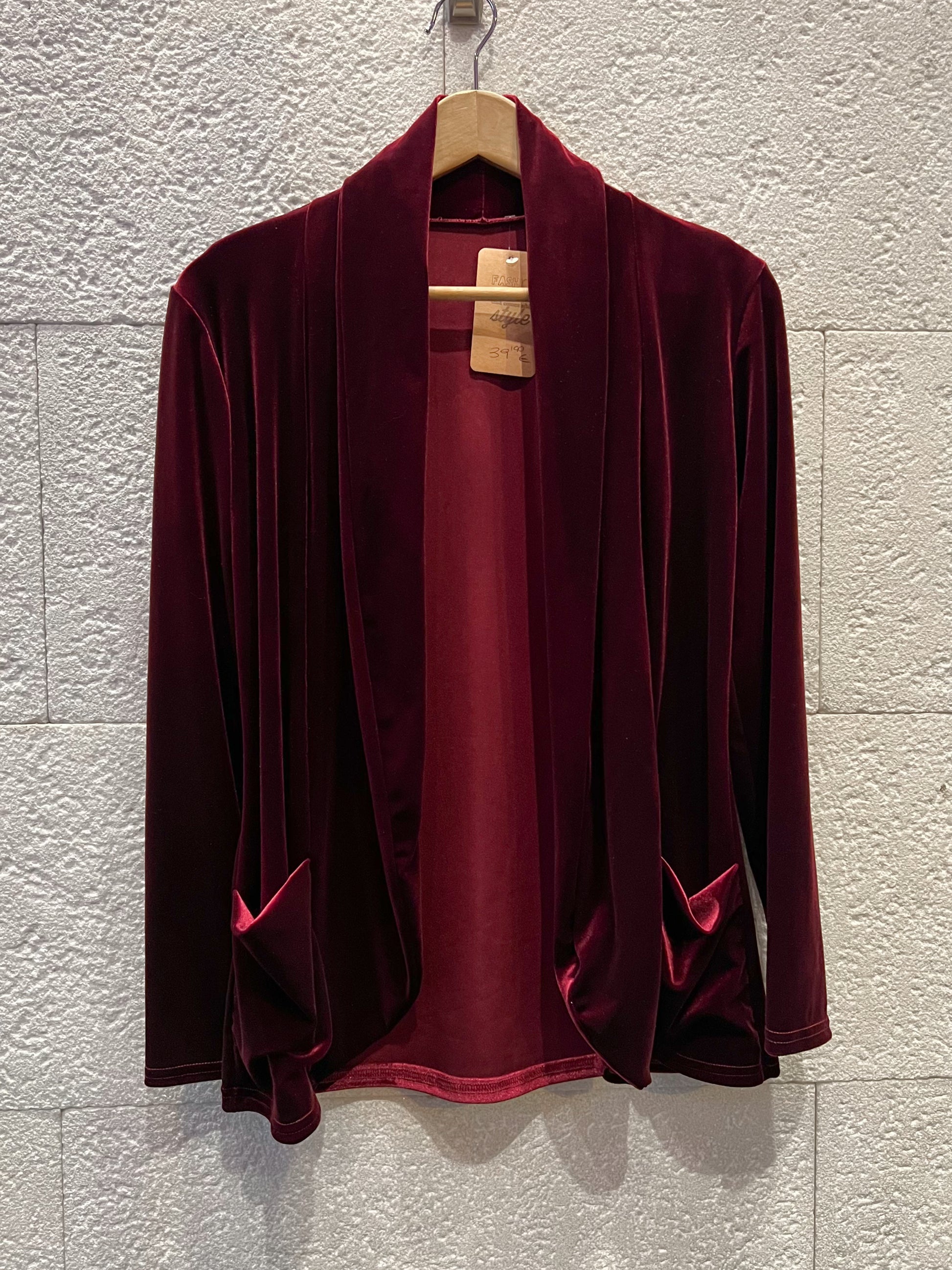 Americana de terciopelo abierta y sin forro. Bolsillos laterales.