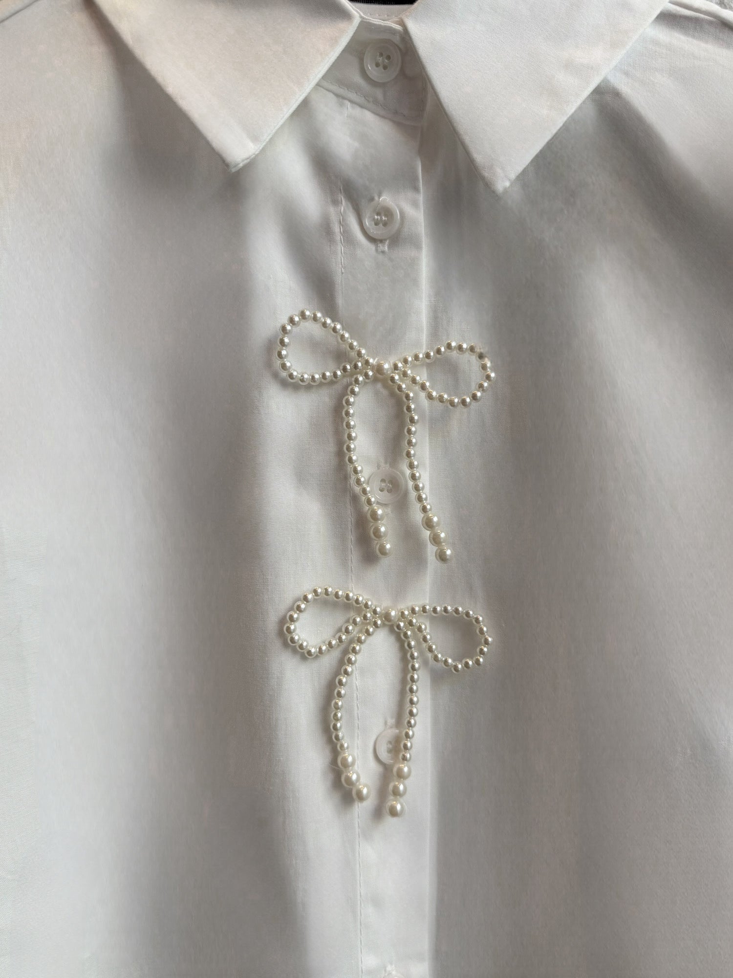 Camisa de algodón popelín con detalle de lazos de perlitas.