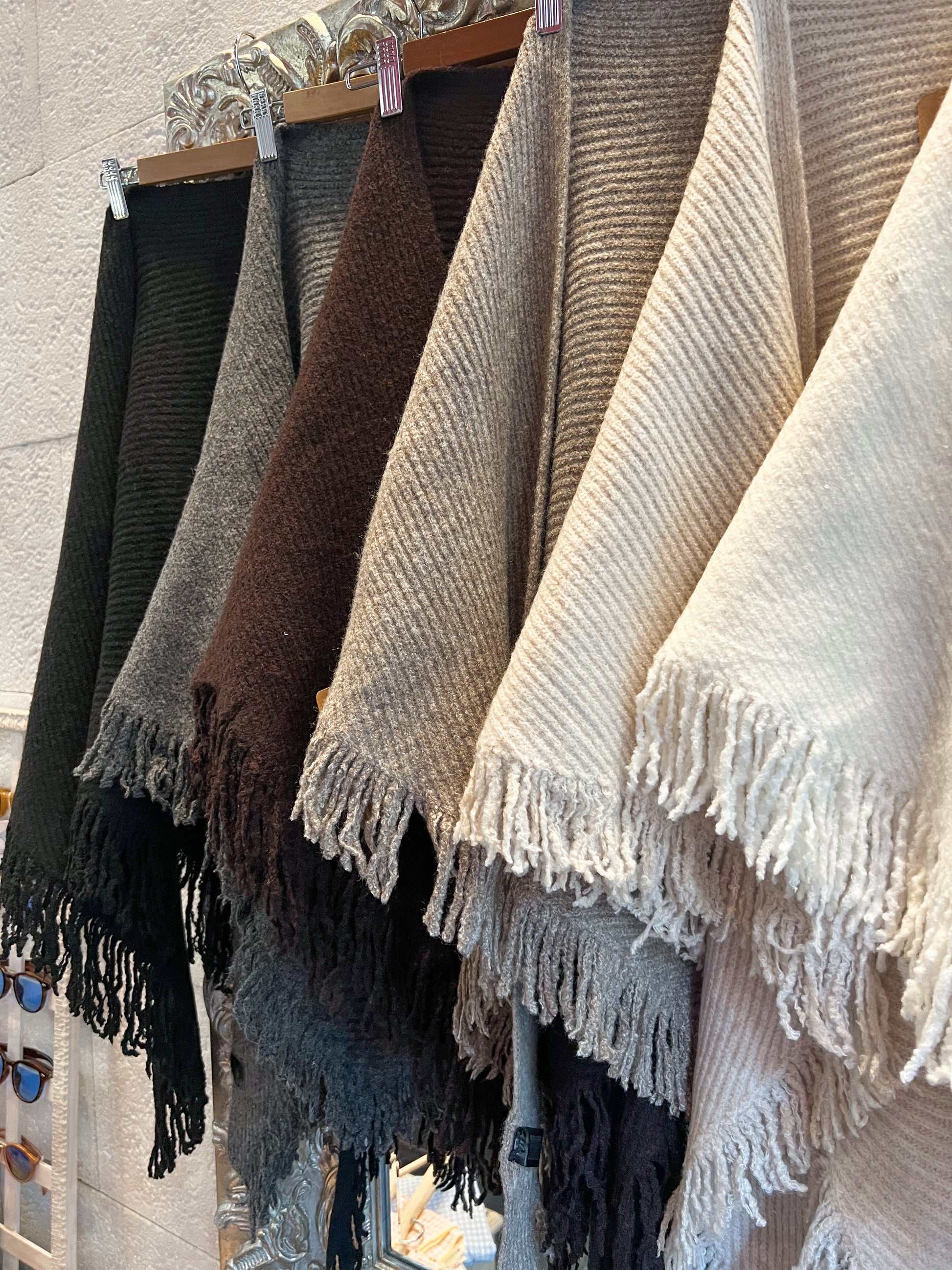 Chal de lana triangular con flecos. Ideal para cualquier ocasión, tanto formal como casual. Muy suave y calentito!