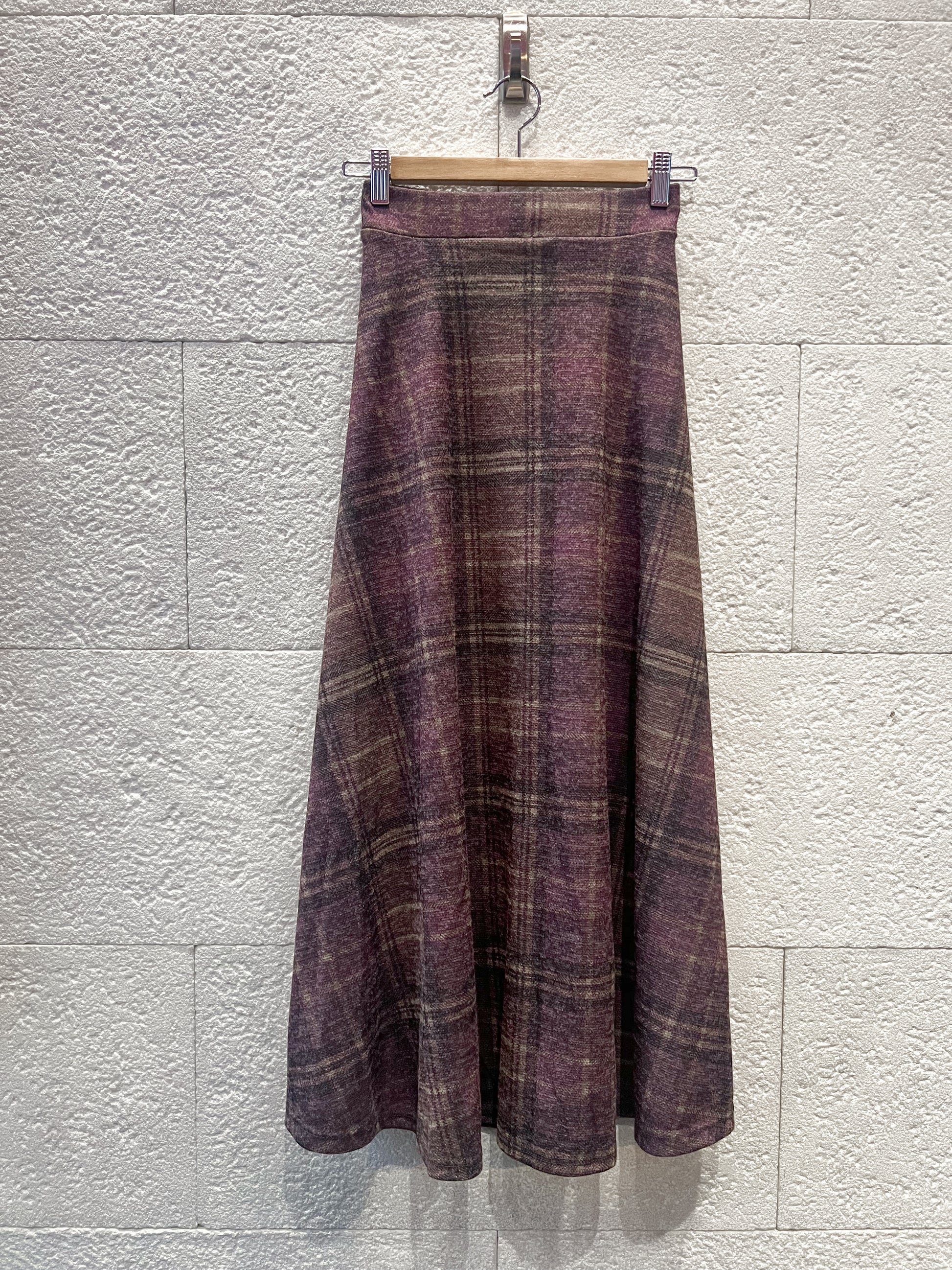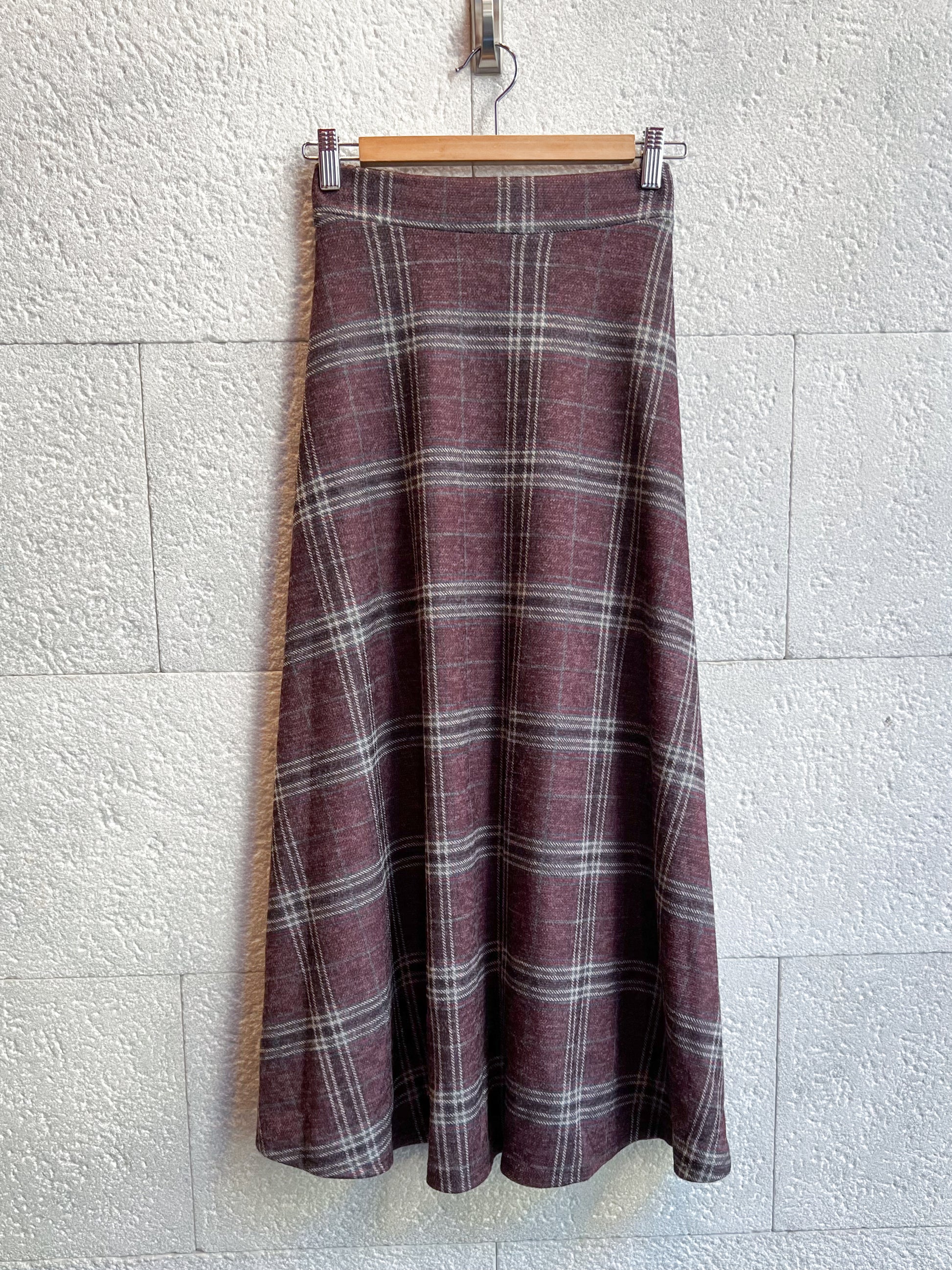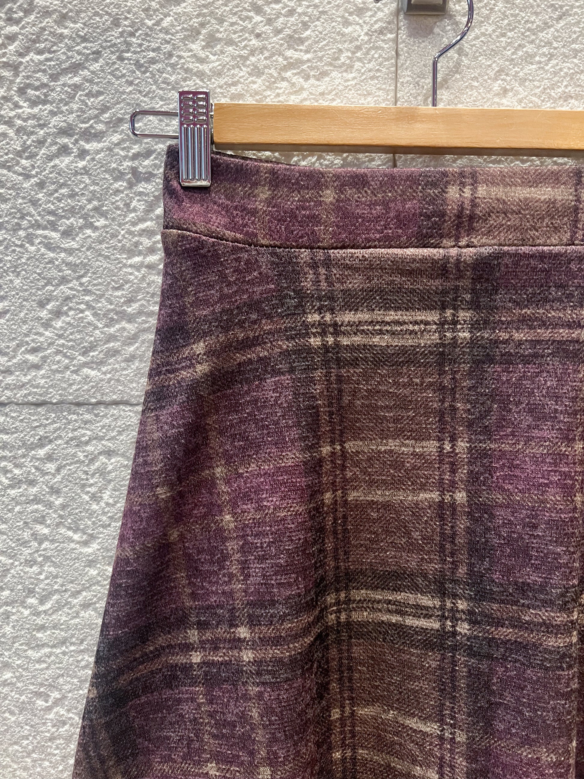 Falda con estampado de cuadros tartán en tonos marrones y negro, forma evasé. Goma en la cintura. Tiene mucho movimiento y favorece un montón 🥰