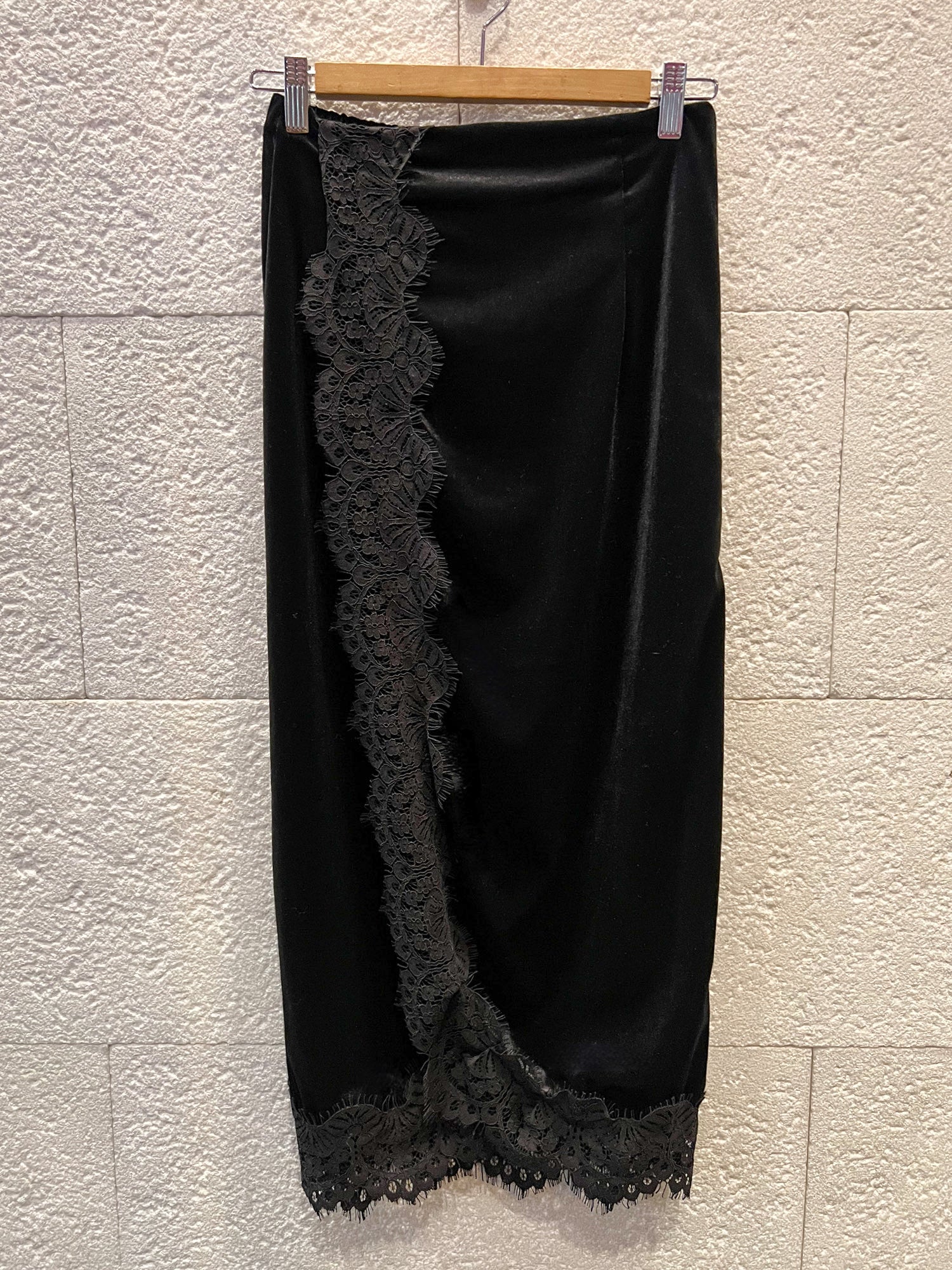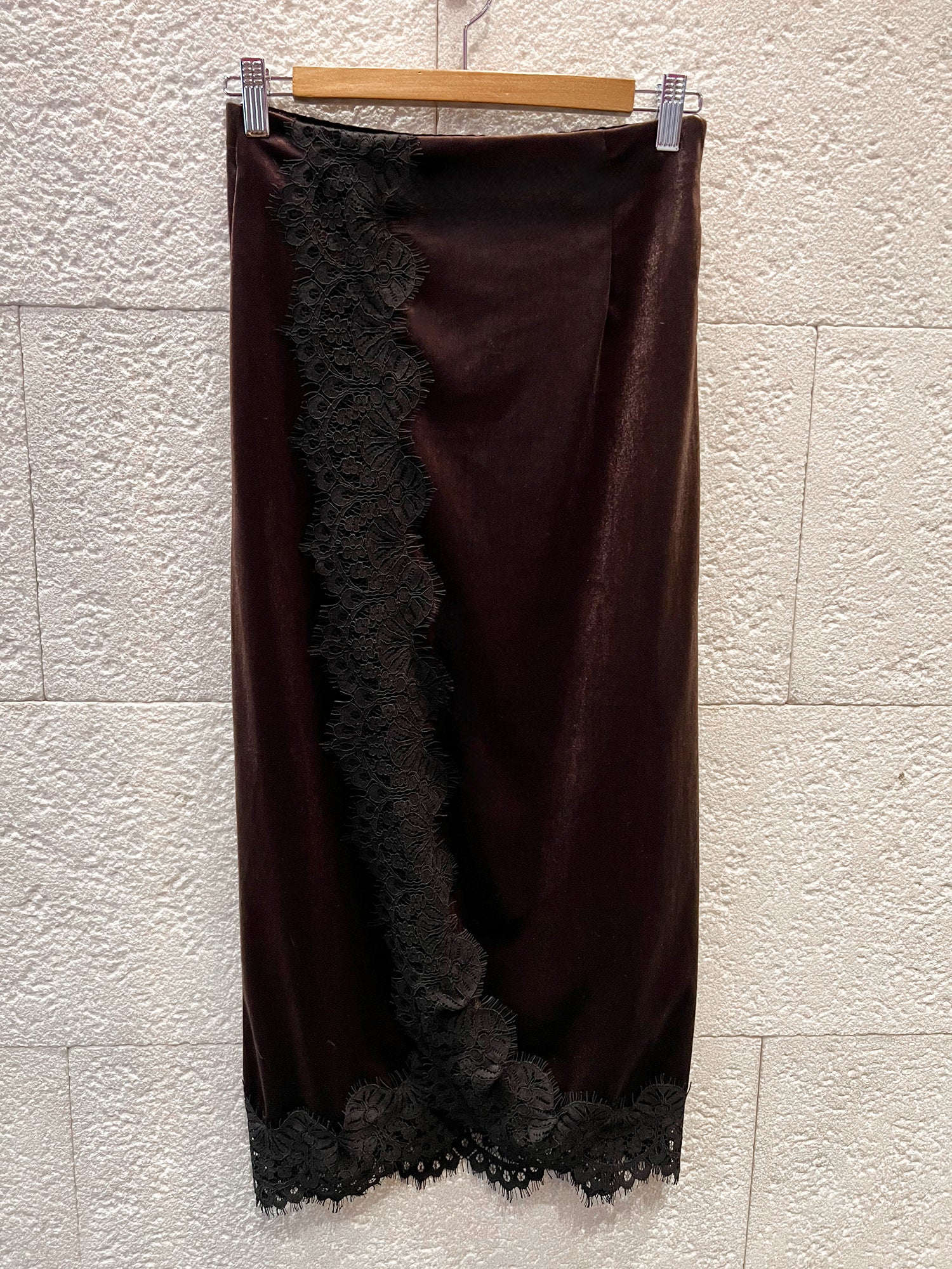 Falda midi de terciopelo combinada con encaje.