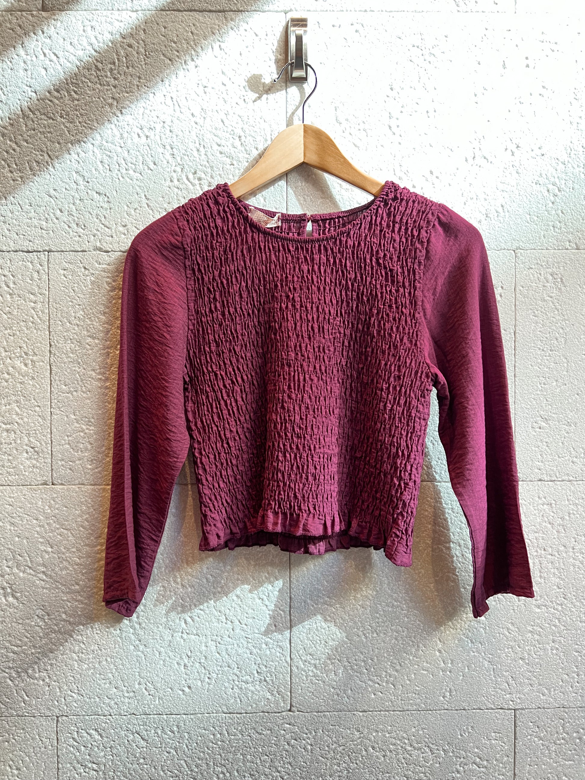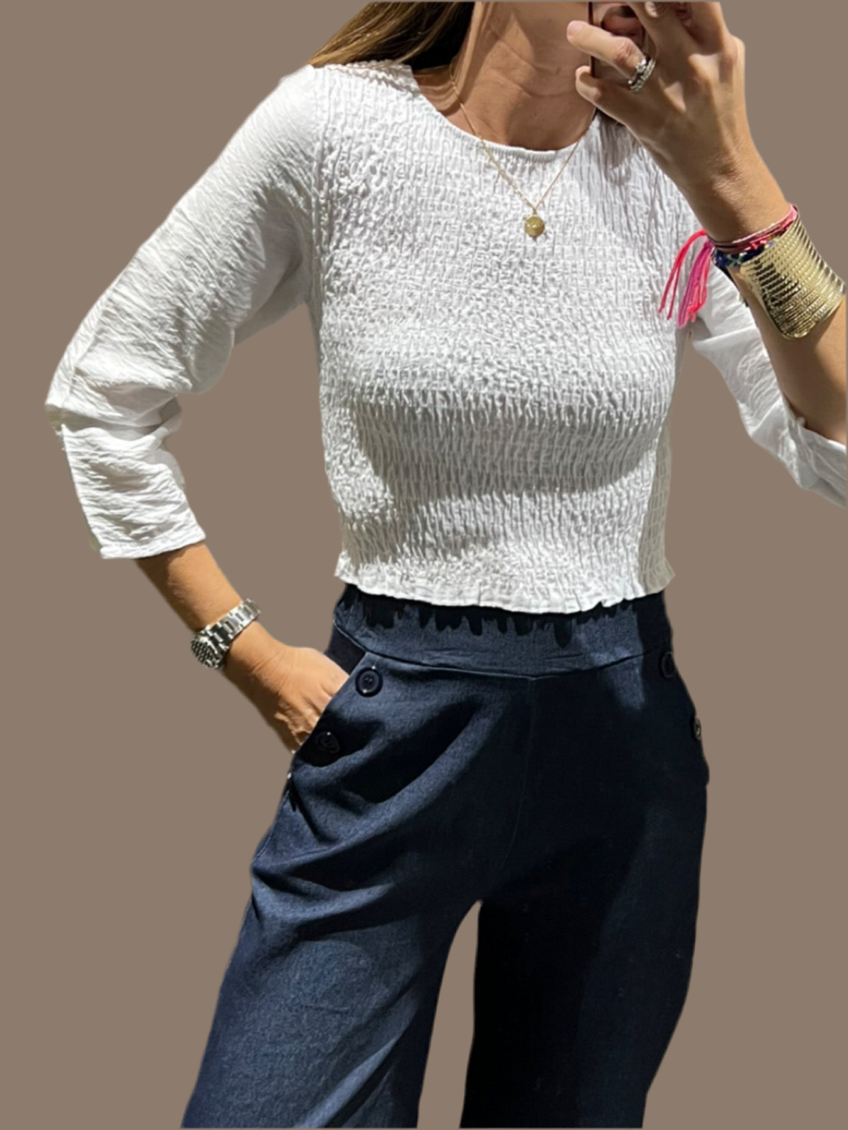 Crop top entallado, totalmente fruncido con nido de abeja.