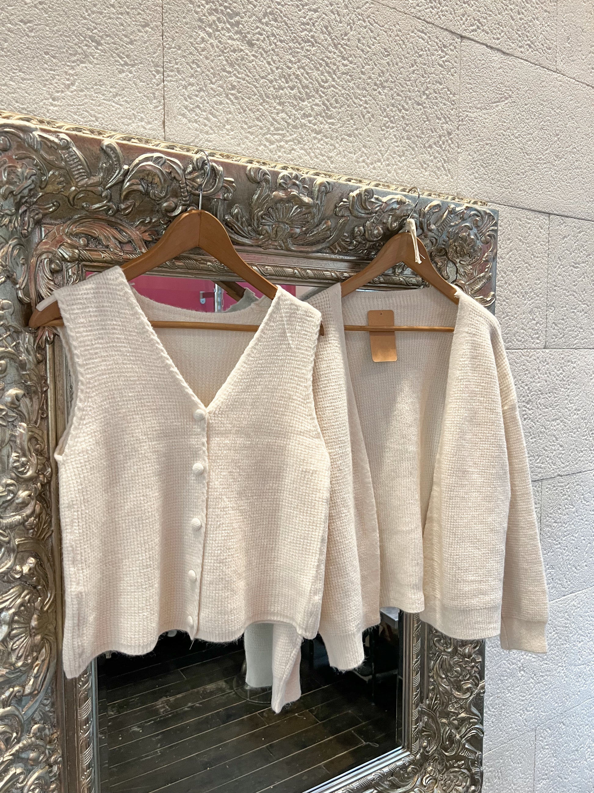 Conjunto de chaleco y chaqueta de punto.