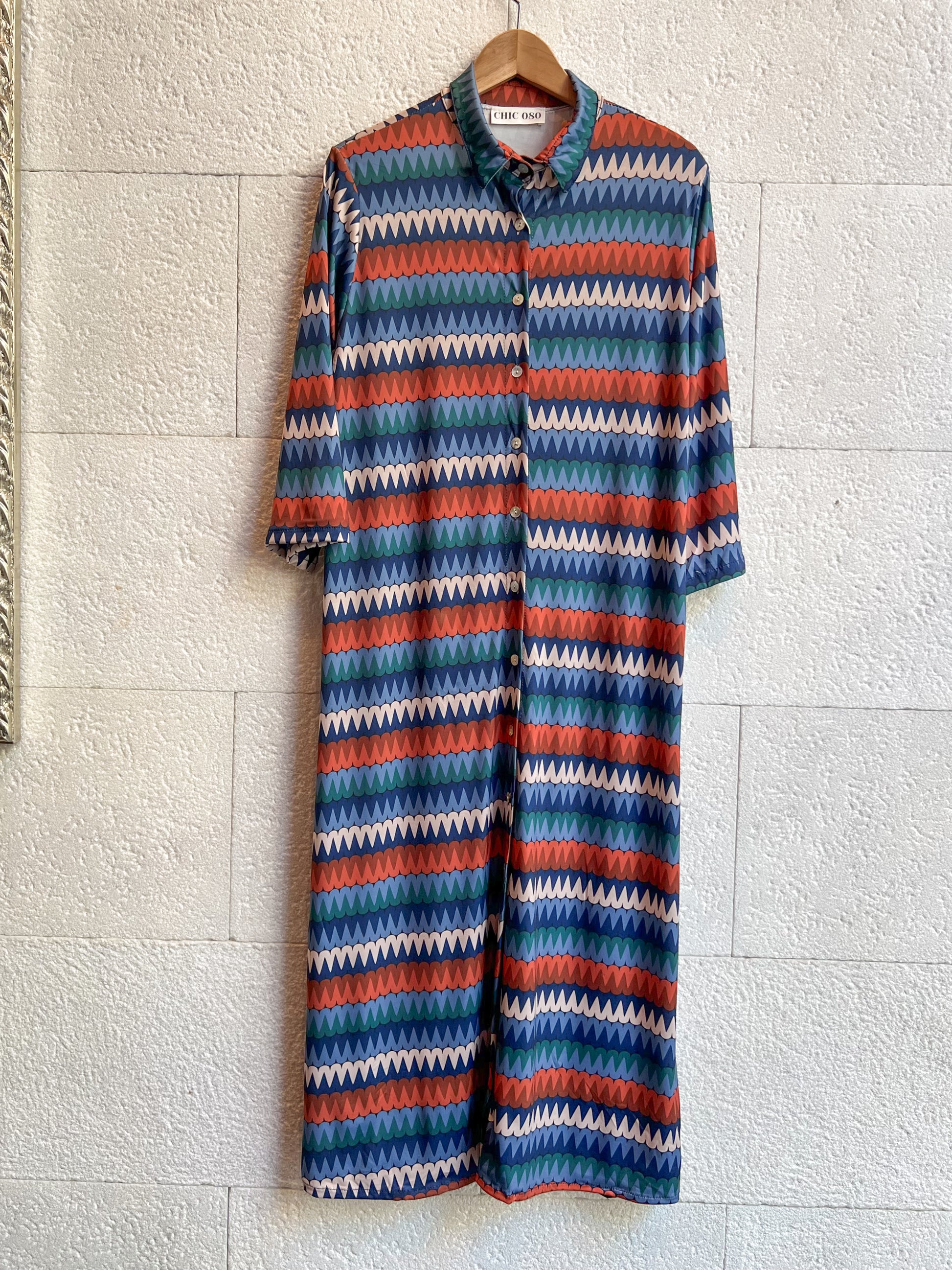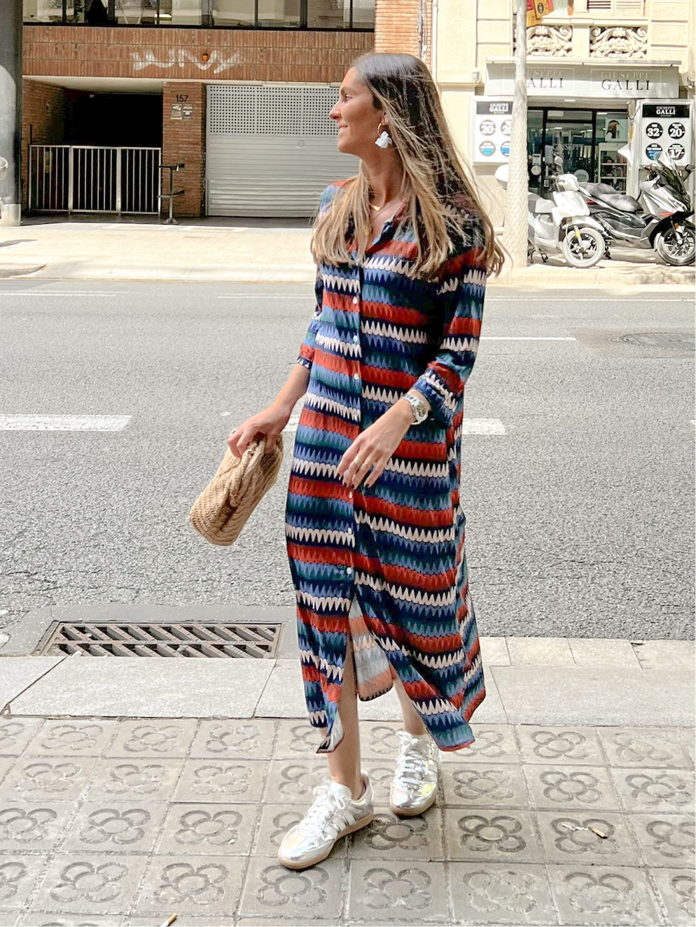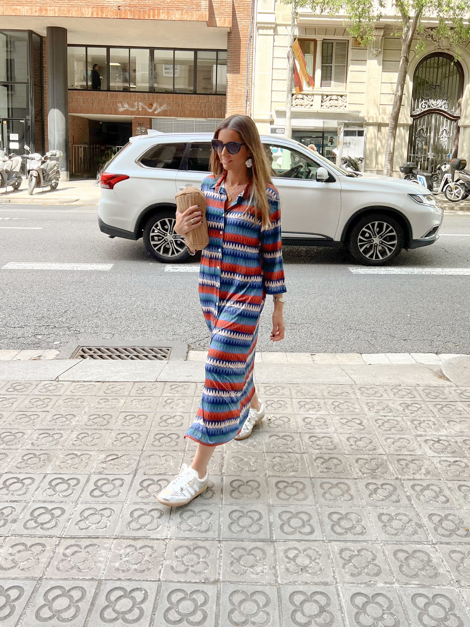 Vestido camisero de punto modal. Totalmente abotonado, con lo que es ideal también a modo de sobrecamisa larga. Tejido súper fresco con mucho movimiento, no se arruga.