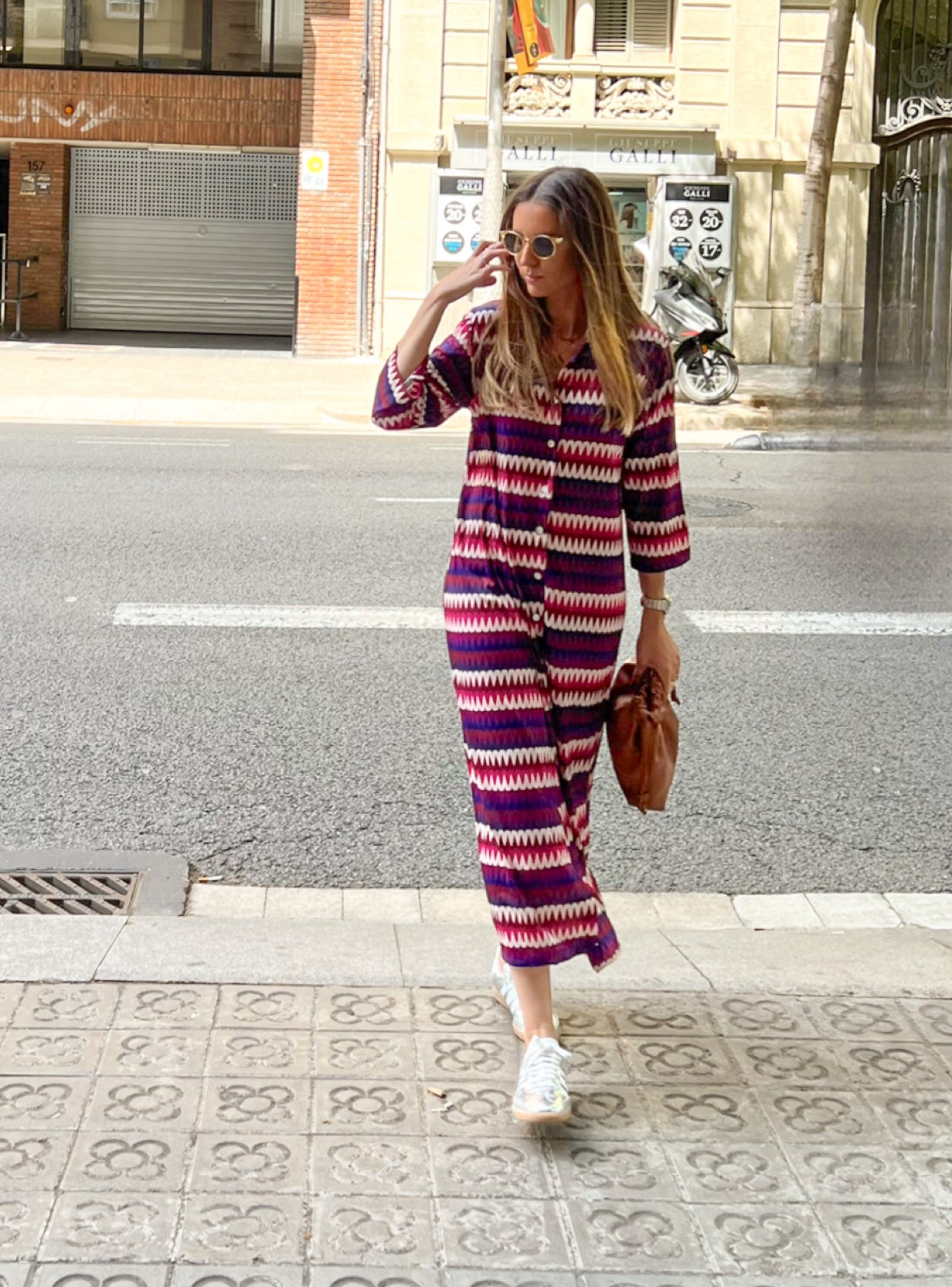 Vestido camisero de punto modal. Totalmente abotonado, con lo que es ideal también a modo de sobrecamisa larga. Tejido súper fresco con mucho movimiento, no se arruga.